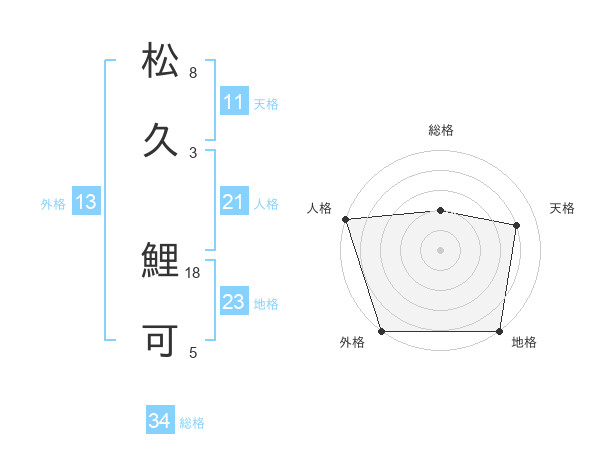 松久 鯉可さんを姓名の画数から五運を鑑定