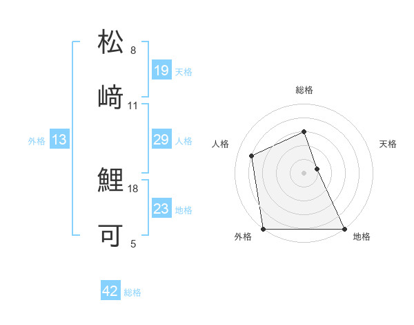 松﨑 鯉可さんを姓名の画数から五運を鑑定