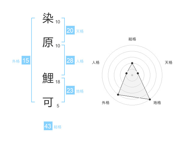 染原 鯉可さんの総格は43画の2点!
