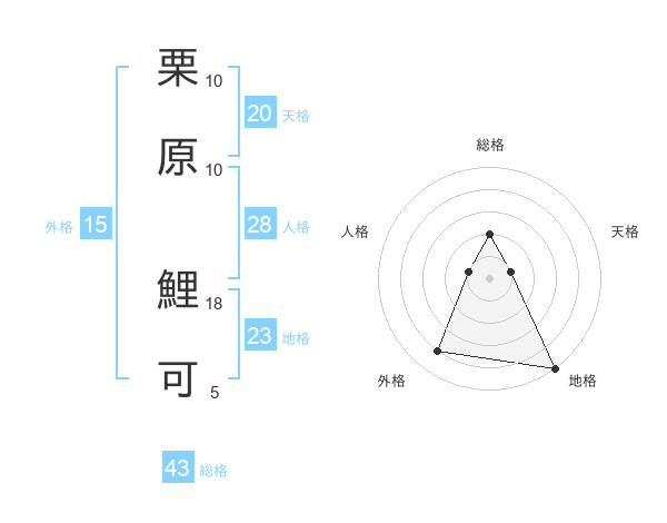 栗原 鯉可さんを姓名の画数から五運を鑑定