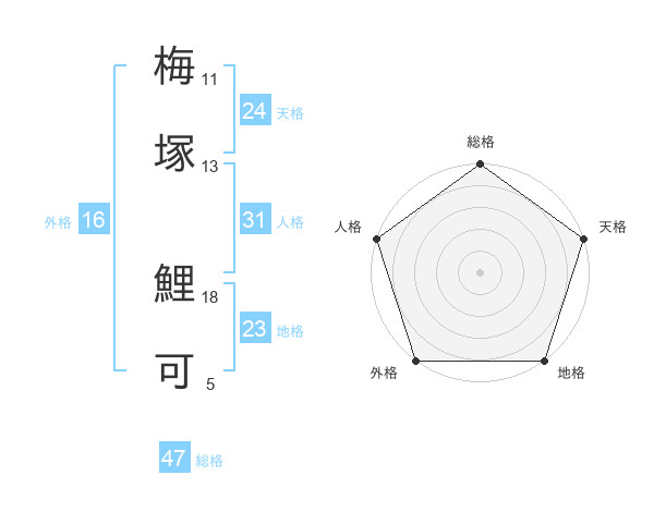 梅塚 鯉可さんの総格は47画の5点!