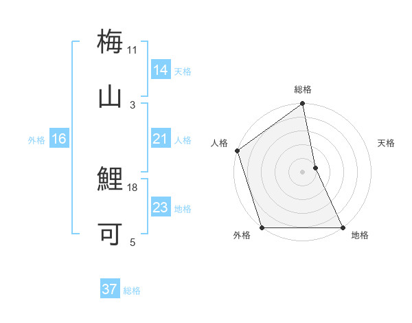 梅山 鯉可さんを姓名の画数から五運を鑑定