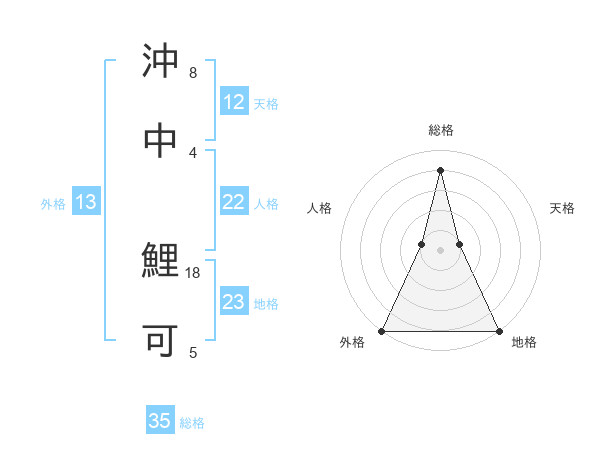 沖中 鯉可さんを姓名の画数から五運を鑑定