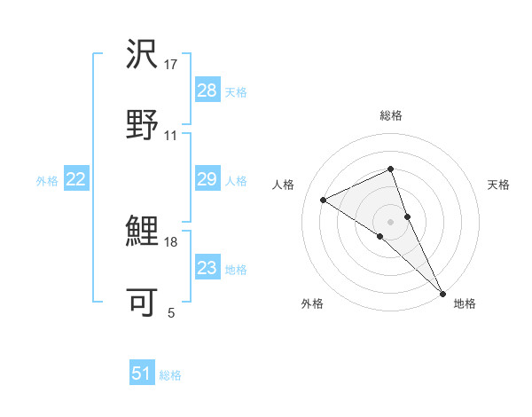 沢野 鯉可さんを姓名の画数から五運を鑑定