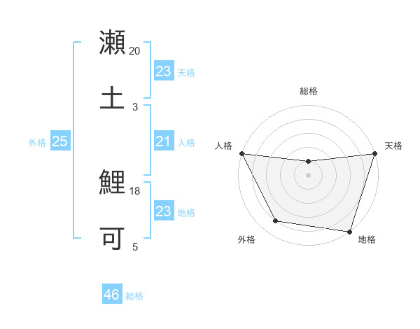 瀬土 鯉可さんを姓名の画数から五運を鑑定