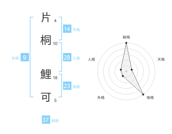 片桐 鯉可さんの総格は37画の5点!