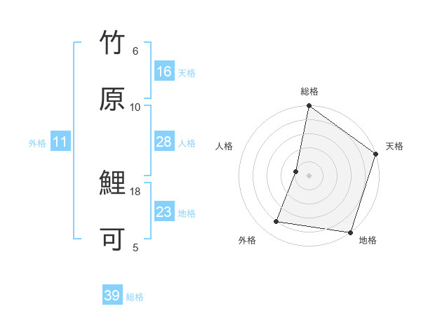 竹原 鯉可さんの総格は39画の5点!