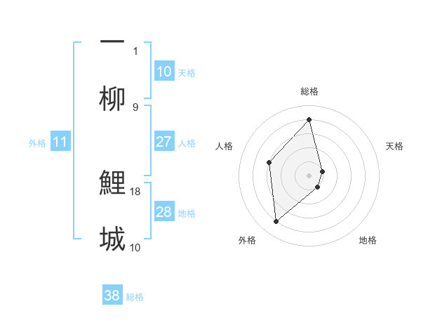 一柳 鯉城さんの総格は38画の4点!