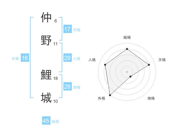 仲野 鯉城さんを姓名の画数から五運を鑑定