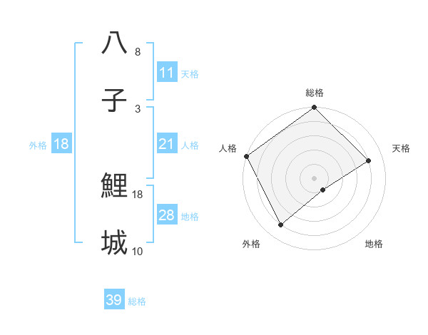 八子 鯉城さんを姓名の画数から五運を鑑定