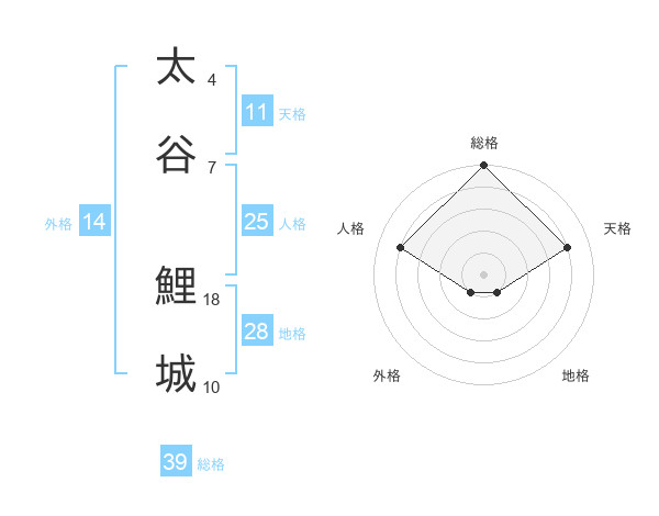 太谷 鯉城さんを姓名の画数から五運を鑑定