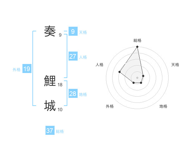奏 鯉城さんを姓名の画数から五運を鑑定