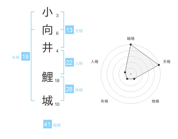 小向井 鯉城さんを姓名の画数から五運を鑑定