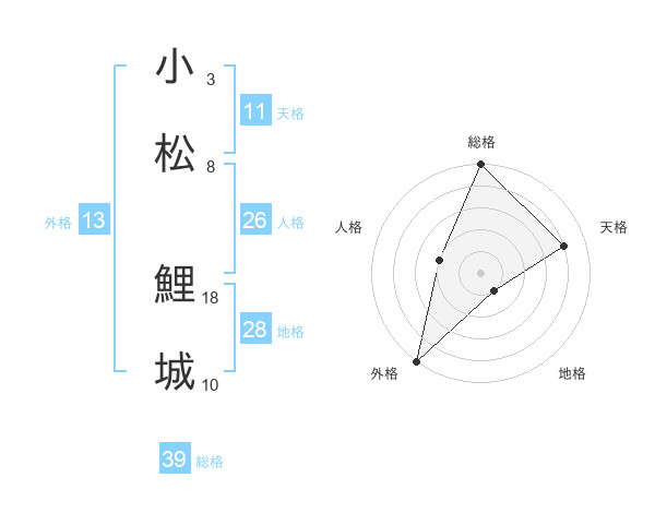 小松 鯉城さんを姓名の画数から五運を鑑定