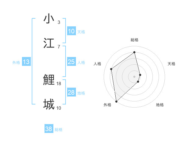 小江 鯉城さんの総格は38画の4点!