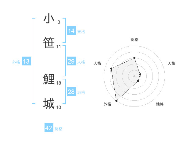 小笹 鯉城さんの総格は42画の3点!