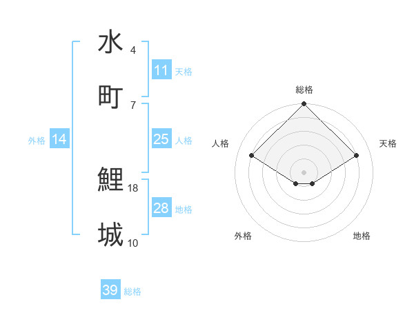 水町 鯉城さんの総格は39画の5点!