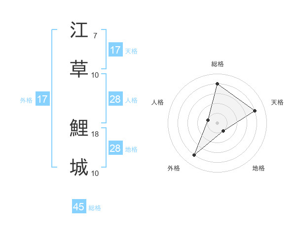 江草 鯉城さんを姓名の画数から五運を鑑定