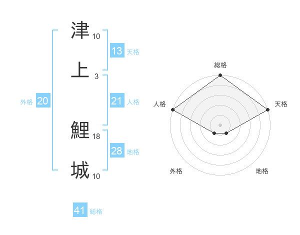 津上 鯉城さんを姓名の画数から五運を鑑定