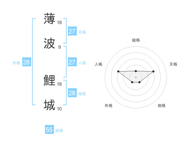薄波 鯉城さんの総格は55画の1点!