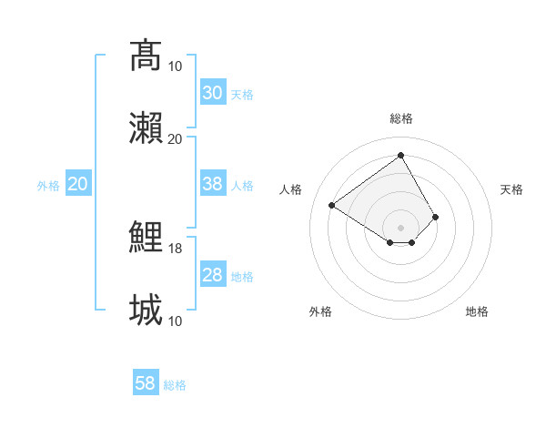 髙瀨 鯉城さんを姓名の画数から五運を鑑定