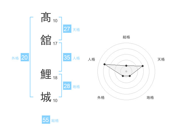 髙舘 鯉城さんの総格は55画の1点!