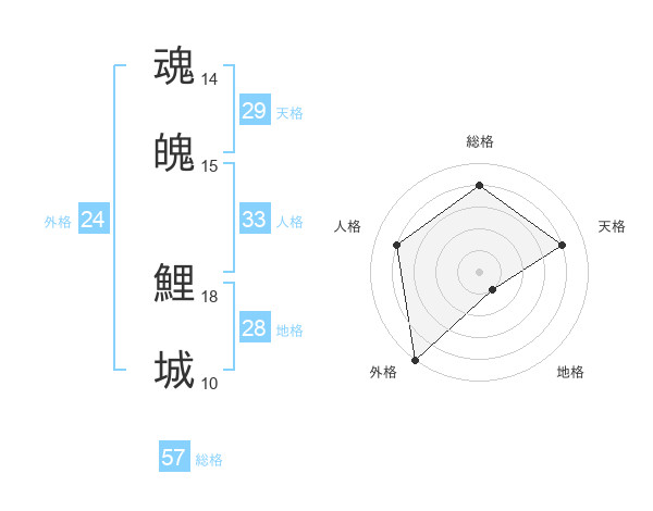 魂魄 鯉城さんの総格は57画の4点!