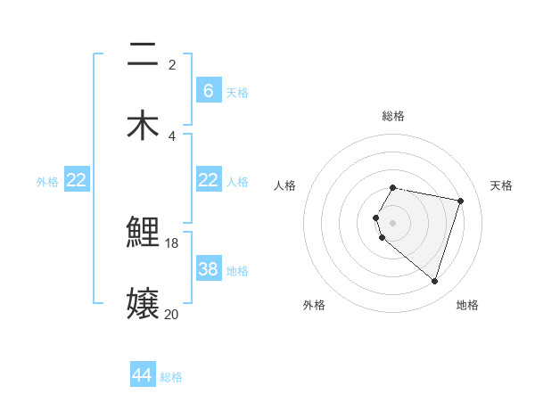二木 鯉嬢さんの外格は22画の1点!