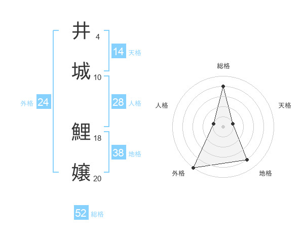 井城 鯉嬢さんを姓名の画数から五運を鑑定