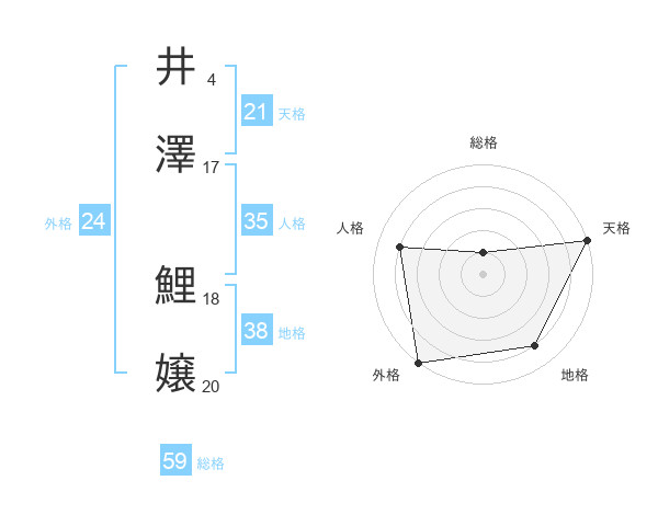 井澤 鯉嬢さんの外格は24画の5点!