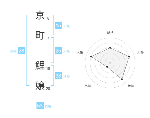 京町 鯉嬢さんの総格は53画の3点!