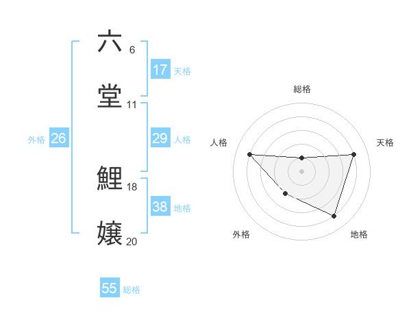 六堂 鯉嬢さんの総格は55画の1点!