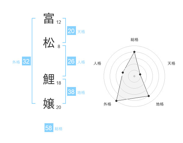 富松 鯉嬢さんを姓名の画数から五運を鑑定