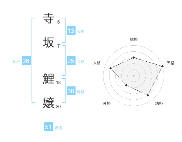 寺坂 鯉嬢さんを姓名の画数から五運を鑑定