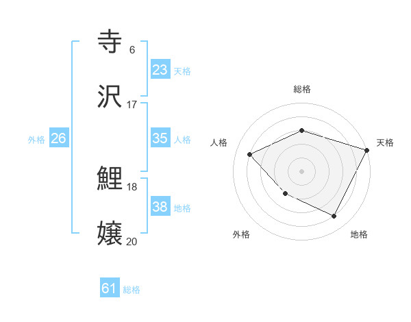 寺沢 鯉嬢さんの地格は38画の4点!