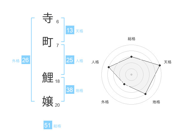 寺町 鯉嬢さんを姓名の画数から五運を鑑定