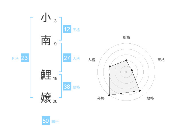 小南 鯉嬢さんを姓名の画数から五運を鑑定