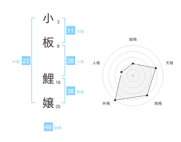 小板 鯉嬢さんを姓名の画数から五運を鑑定