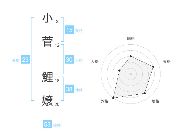 小菅 鯉嬢さんを姓名の画数から五運を鑑定