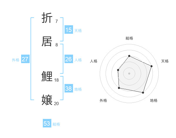 折居 鯉嬢さんの総格は53画の3点!