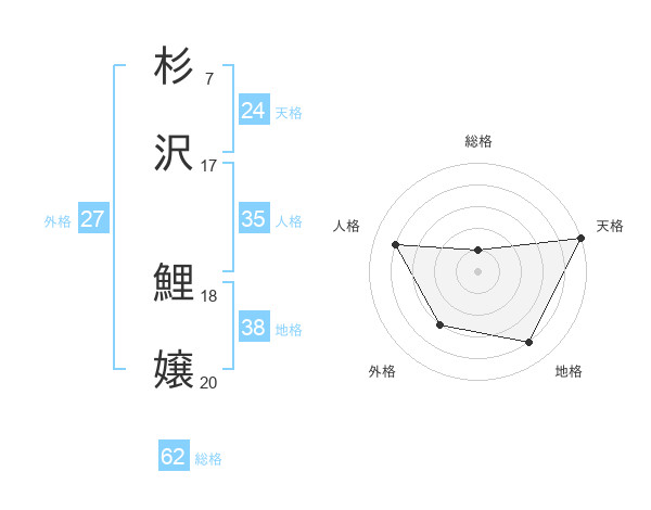 杉沢 鯉嬢さんを姓名の画数から五運を鑑定