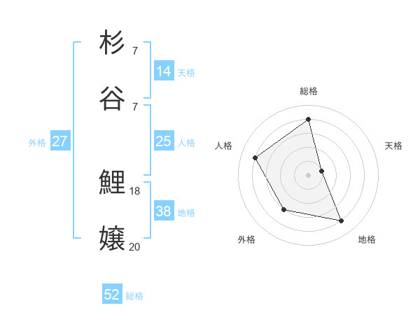 杉谷 鯉嬢さんの総格は52画の4点!