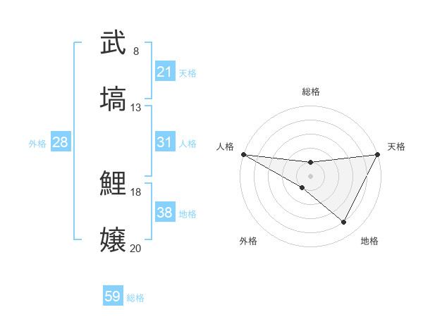 武塙 鯉嬢さんの天格は21画の5点!