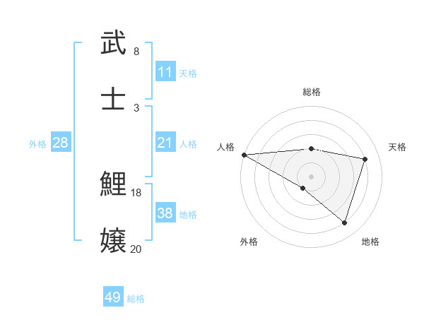 武士 鯉嬢さんの天格は11画の4点!