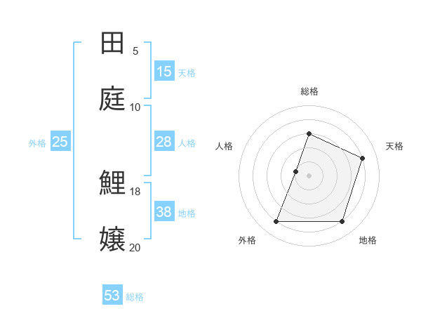 田庭 鯉嬢さんの総格は53画の3点!