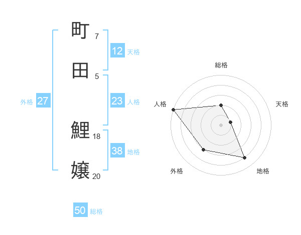 町田 鯉嬢さんの天格は12画の1点!
