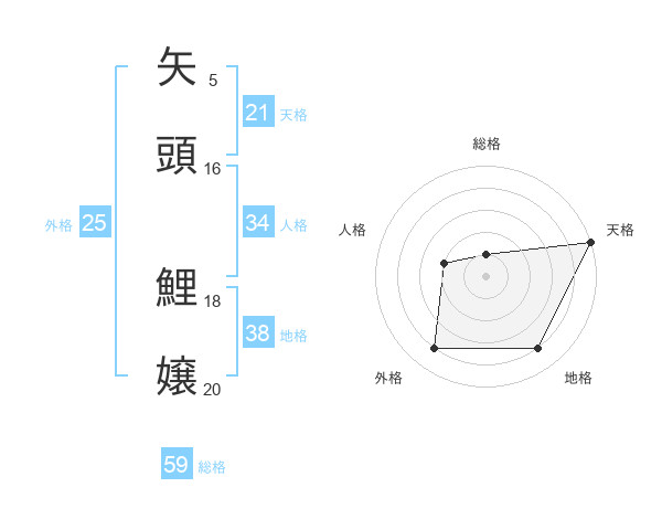 矢頭 鯉嬢さんの総格は59画の1点!