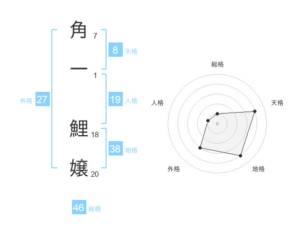 角一 鯉嬢さんを姓名の画数から五運を鑑定