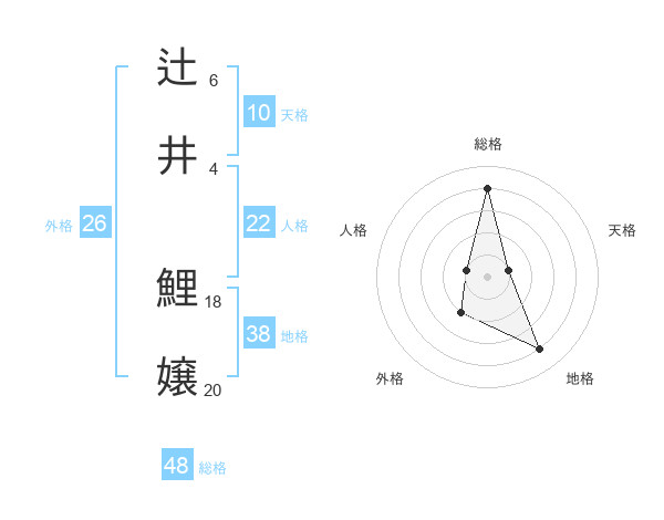 辻井 鯉嬢さんの総格は48画の4点!