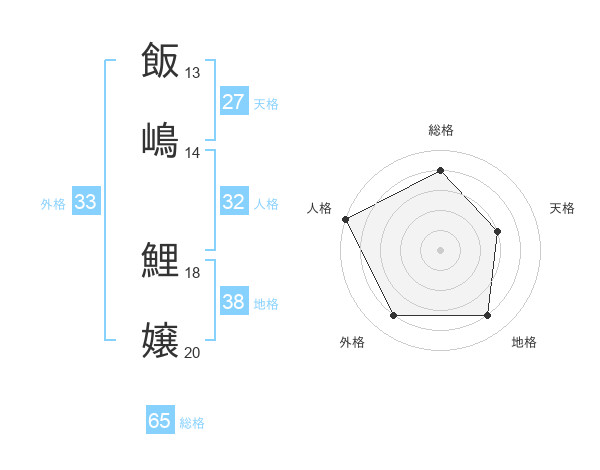 飯嶋 鯉嬢さんの総格は65画の4点!